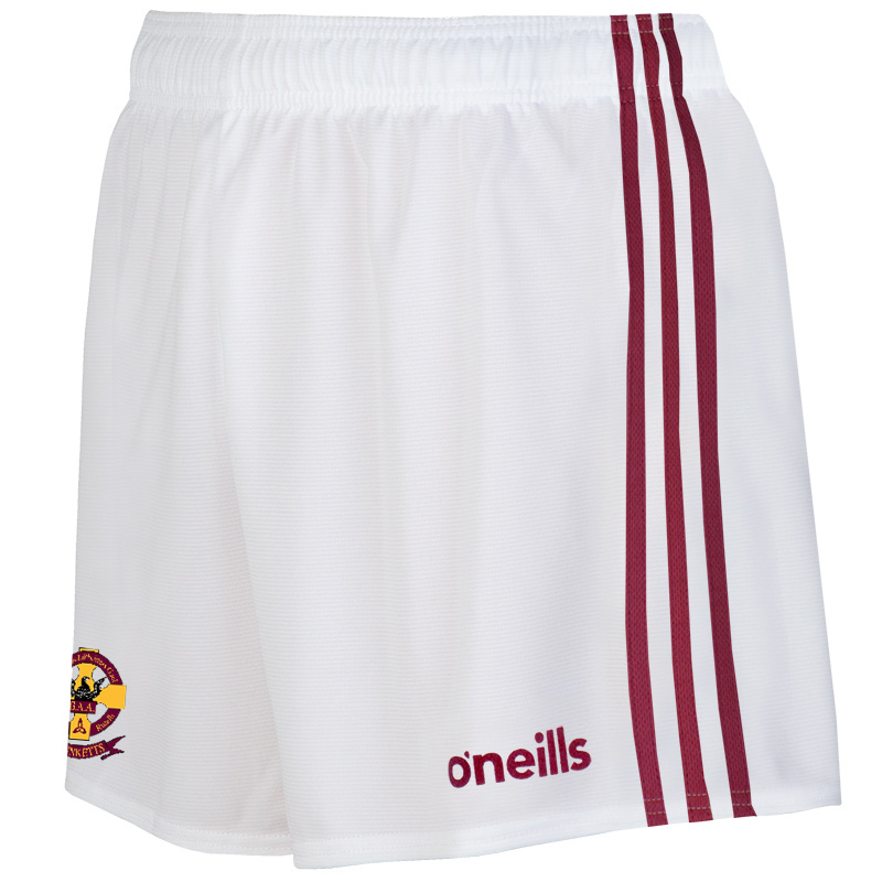 Club Shorts - White with Maroon stripes. Elasticated waistband and drawstring. Club crest printed on front right side of shorts.